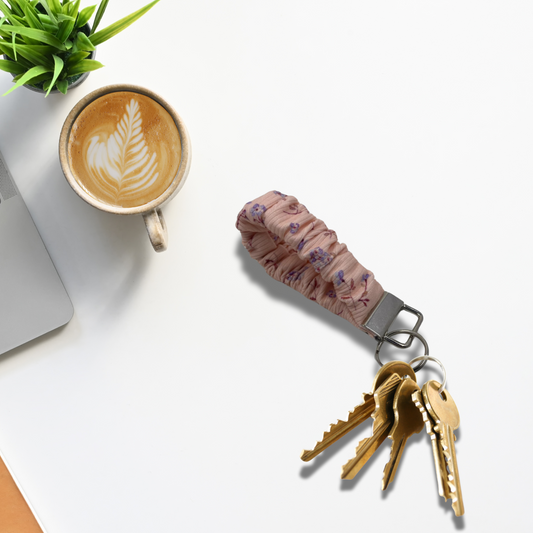 THE VIOLETS ON PINK SCRUNCHIE KEYCHAIN