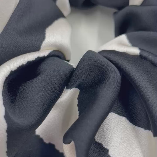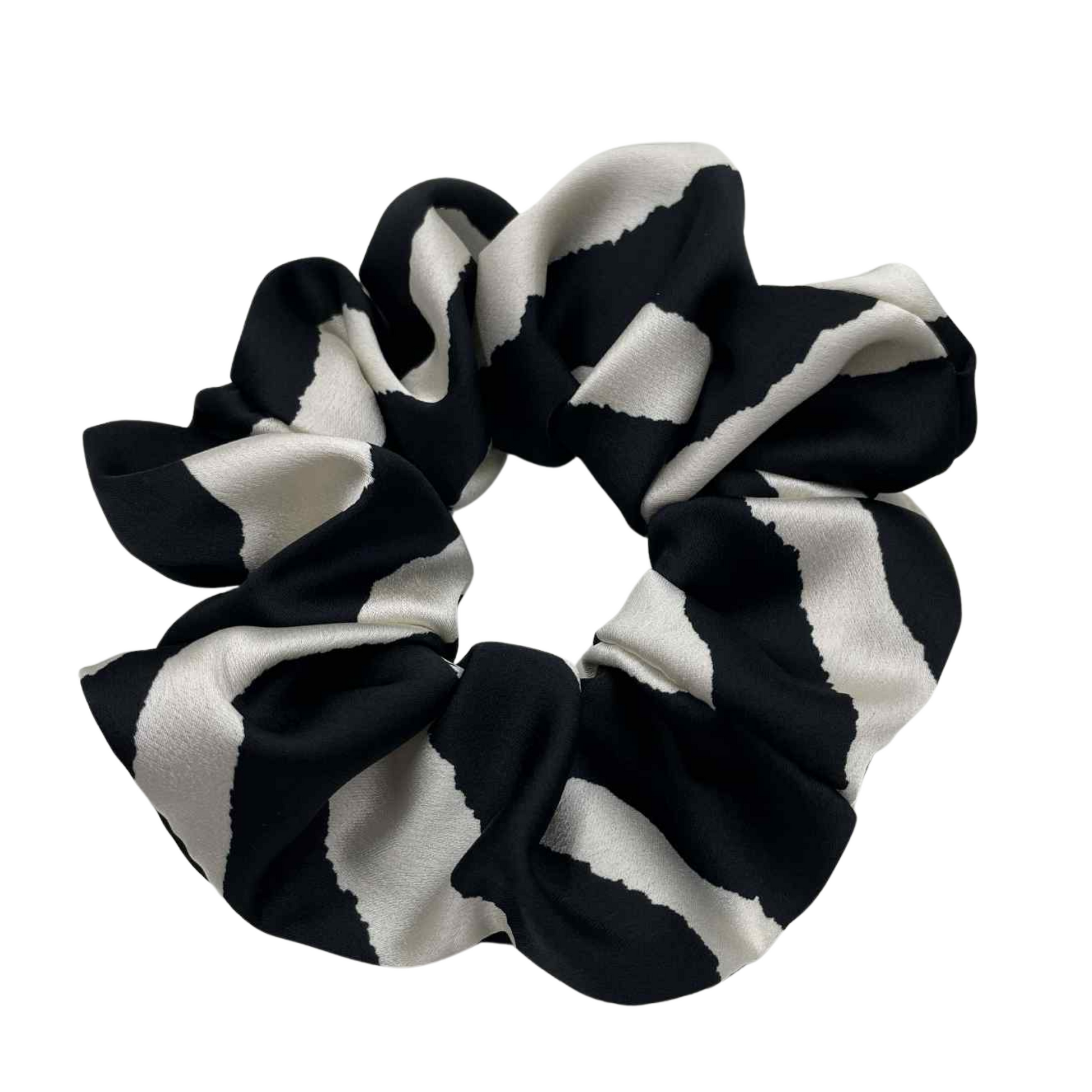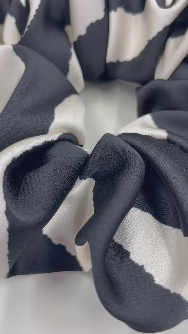 This scrunchie is made from black and cream zebra print silky satin fabric for the animal print lover that can be wrapped around hair two to three times depending upon your hair thickness.