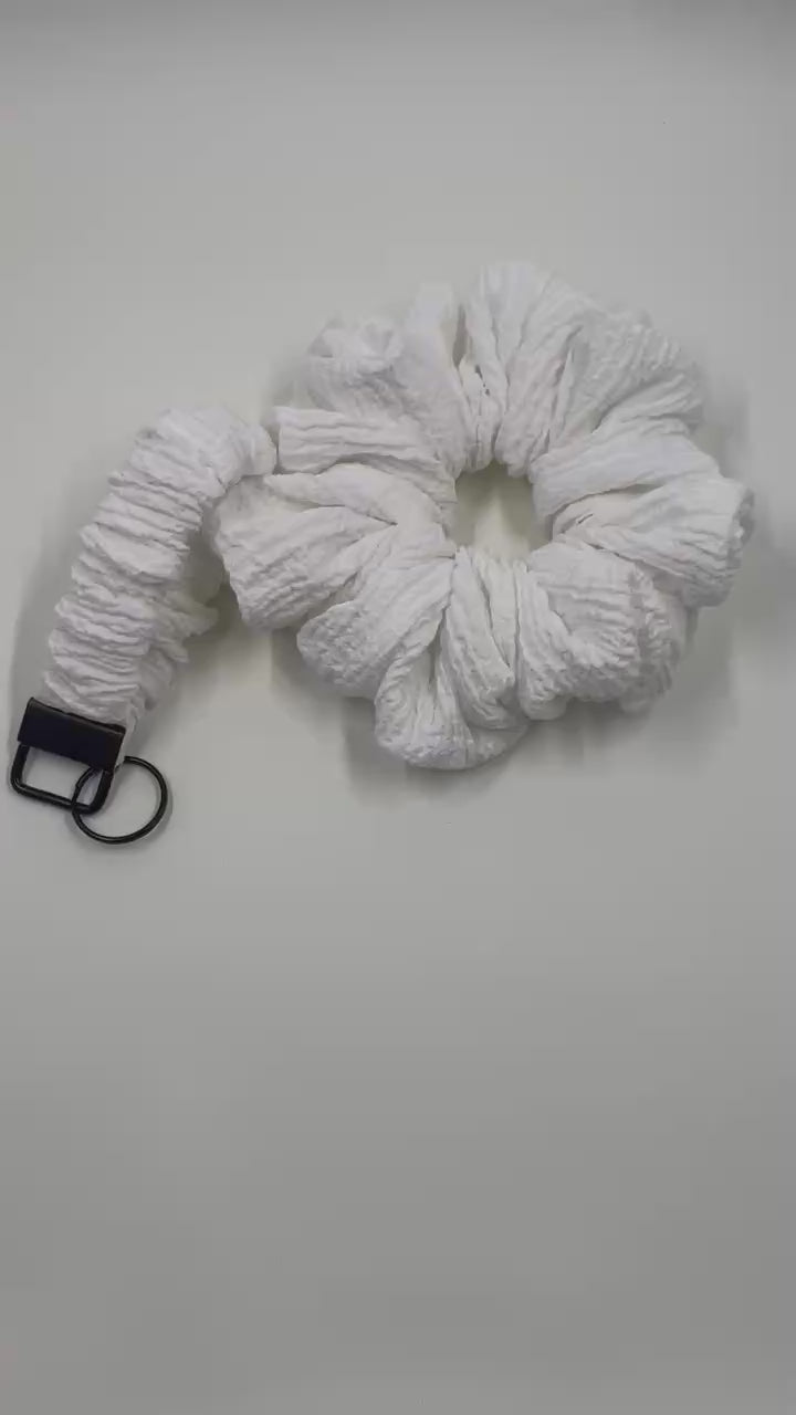 Step up your hair style with our EVEREST XL SCRUNCHIE! Featuring a crinkled texture that adds dimension and a bold white hue, this scrunchie is twice as big as your average one—it’s sure to turn heads. Want to go all out? Grab the matching keychain for an extra splash of fun (sold separately).